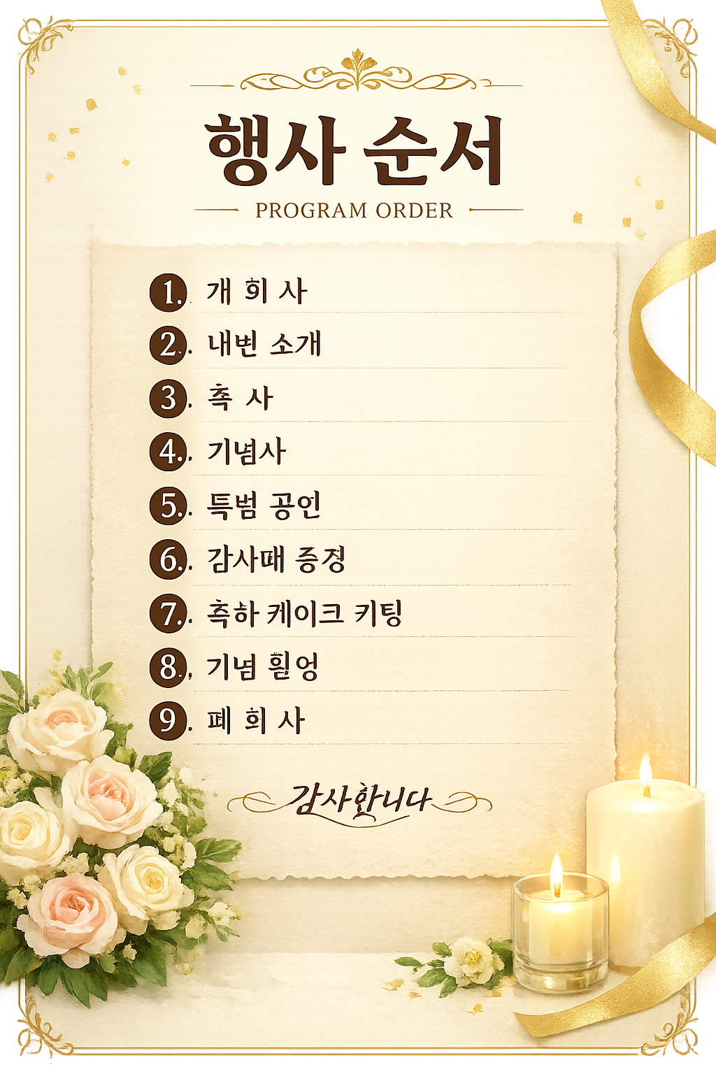 품격 있으면서도 실무적으로 잘 돌아가는 행사 구성을 만들어 보시기 바랍니다.