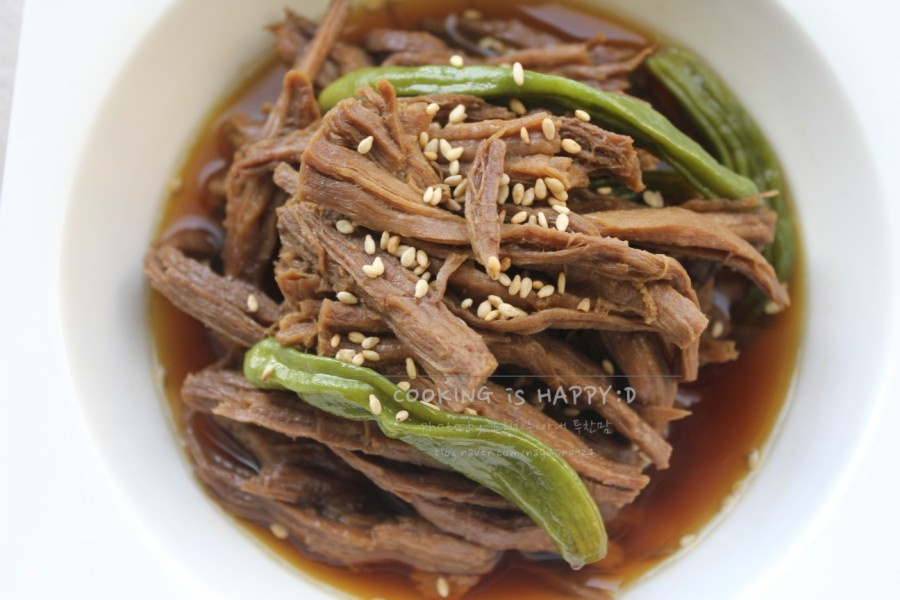 • 찢은 고기를 양념장에 넣고 약불에서 20~30분 졸입니다.