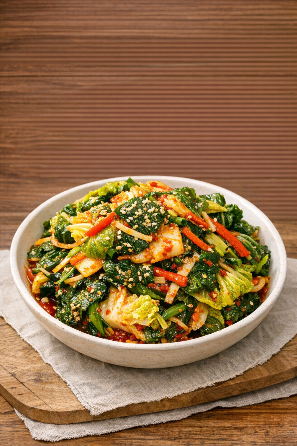 겉절이는 손맛도 중요하지만 과하게 버무리지 않는 것이 훨씬 중요합니다. 오래 치대면 숨이 빨리 죽고 채소에서 물이 나옵니다.