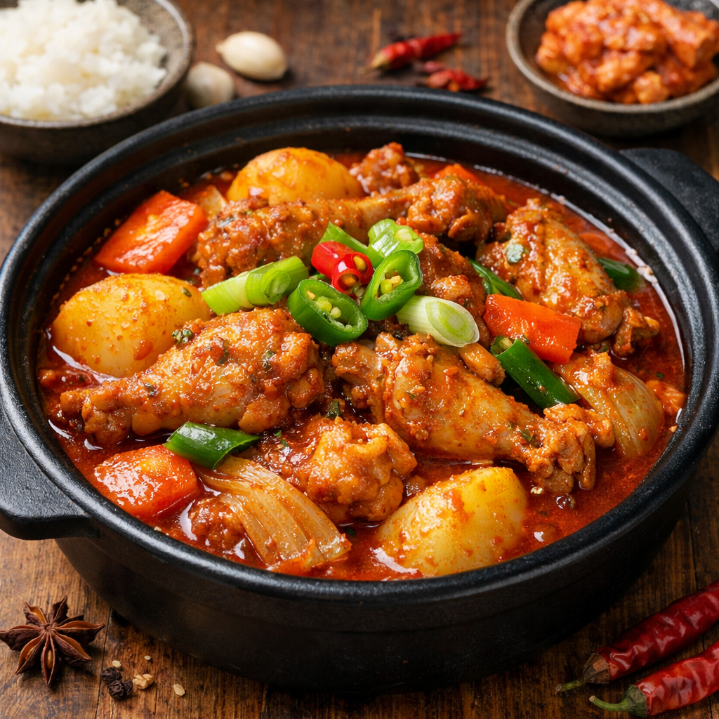 한국인이 좋아하는 집밥 메뉴를 떠올리면 빠지지 않는 음식이 바로 닭볶음탕입니다. 큼직한 닭고기와 감자, 양파, 당근 같은 채소가 매콤달콤한 양념에 푹 익어 들어가고, 자작한 국물까지 밥에 쓱쓱 비벼 먹으면 그야말로 밥도둑이 따로 없습니다. 특히 가족이 함께 먹는 저녁 메뉴나 손님상 메뉴, 주말 푸짐한 한 끼 메뉴로도 인기가 많아서 계절 상관없이 자주 찾게 되는 요리입니다.
