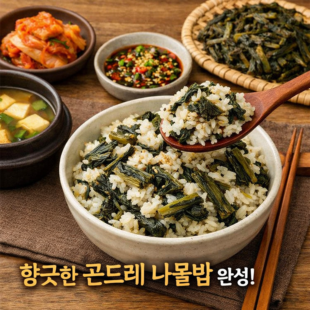 곤드레 특유의 은은한 향과 부드러운 식감, 그리고 양념장 하나만 잘 만들어도 밥 한 공기가 금세 사라지는 메뉴인데요.