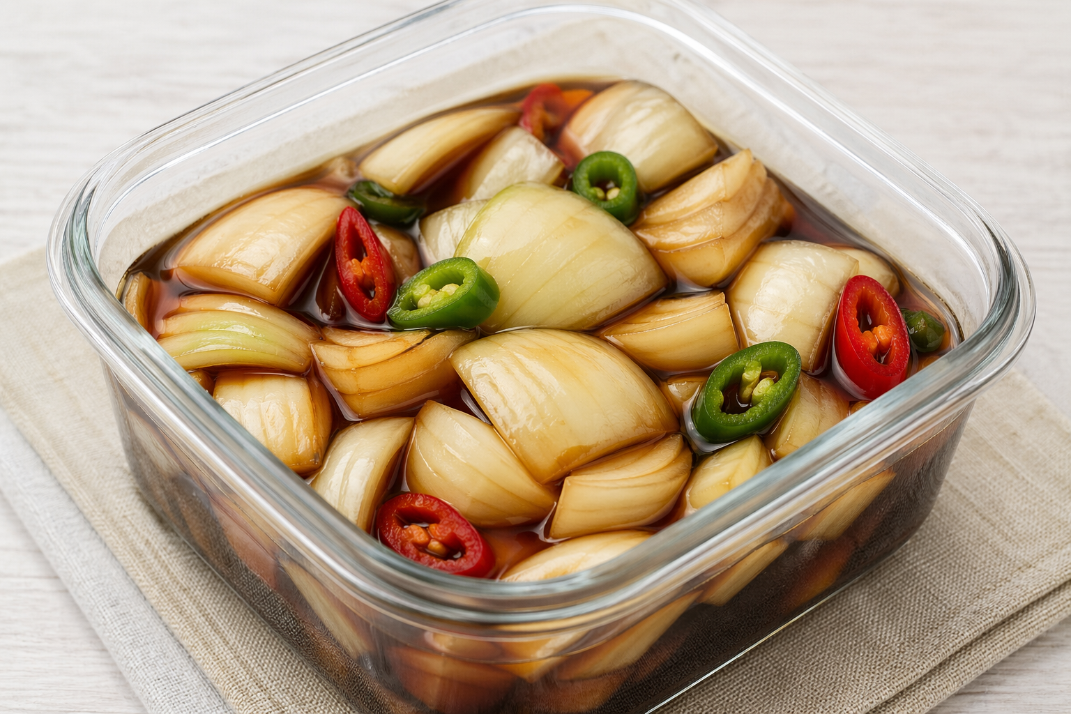 양파는 특유의 매운맛 때문에 생으로 먹기 부담스러울 수 있지만, 장아찌로 만들면 매운맛은 줄어들고 단맛과 감칠맛이 살아나 훨씬 부드럽게 즐길 수 있습니다. 게다가 식초와 간장을 활용해 만든 장아찌는 소화 촉진과 입맛 돋우는 효과까지 있어 건강에도 좋은 음식입니다.